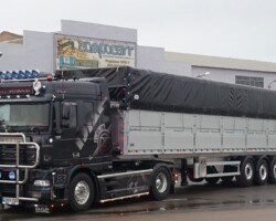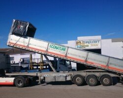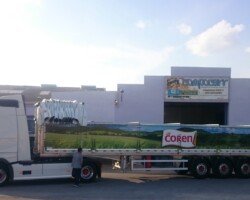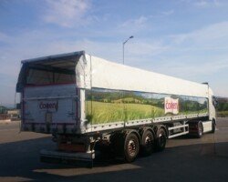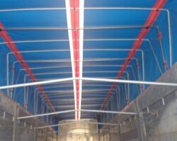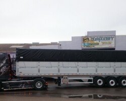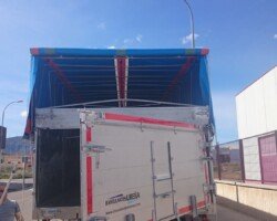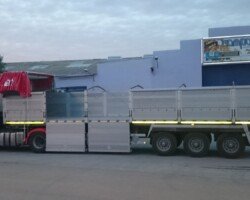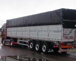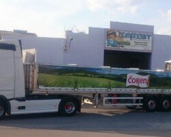 El sistema de plegador de toldo «Compogranel» está diseñado para la aplicación en semirremolques con caja basculante o piso móvil de laterales abatibles dedicados especial mente al transporte de cargas a granel y generales, permitiendo la apertura de ambos laterales de la carrocería para acceder a la mercancía.