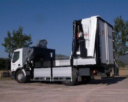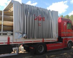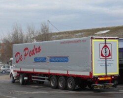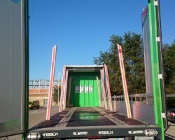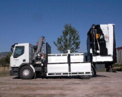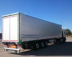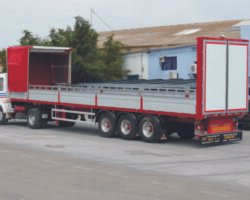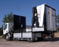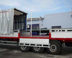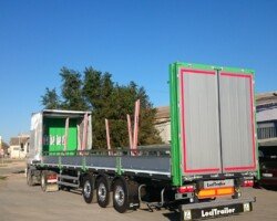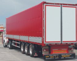 Opción 2ª Semilonas con laterales abatibles y portón trasero preparado con estacas para transporte de madera y cargas generales